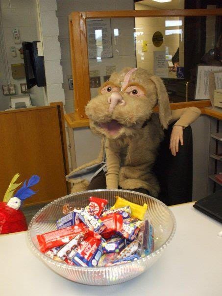 Falkor with bowl of Halloween candy is somehow the best and worst Falkor